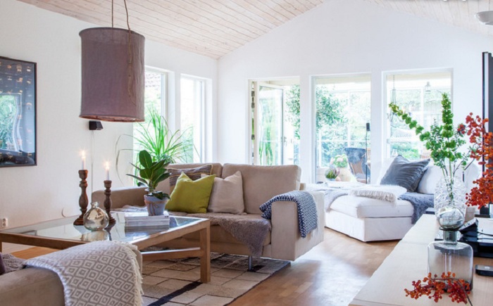 Оформление гостиной все еще выглядит незавершенным? Наверняка проблема скрывается в недостаточном разнообразии текстур. Наличие в гостиной материалов, отличающиеся друг от друга, оживит ее интерьер. Сочетайте и комбинируйте различные текстуры: мягкая – искусственный мех для обшивки мебели, кашемировый или вязаный плед, вельветовые занавески; природная – керамика ручной работы, камни, коряги; блестящая – металлические рамки, стеклянные вазы, зеркала; грубая – льняные салфетки, коврики-циновки, плетеная мебель; нежная – кожаная обивка, полированное дерево.