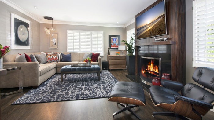 Телевизор – важный предмет в любой гостиной, но это совсем не обозначает, что именно он должен стать центральным элементом интерьера. Ведь все-таки гостиная предназначается для общения с близкими, а не взаимодействия с техникой. Достойный претендент на роль центрального элемента в интерьере – камин. Если установить настоящий камин не позволяют технические условия, обратите внимание на электрические или фальш-камины.